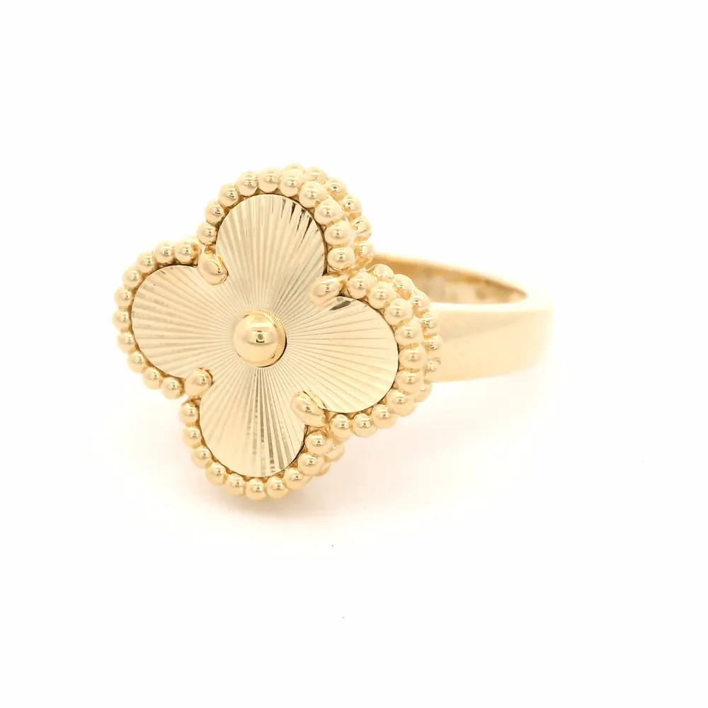 Be the first to review “Van Cleef Alhambra Yellow Gold Guilloche Ring VCARP6I300”