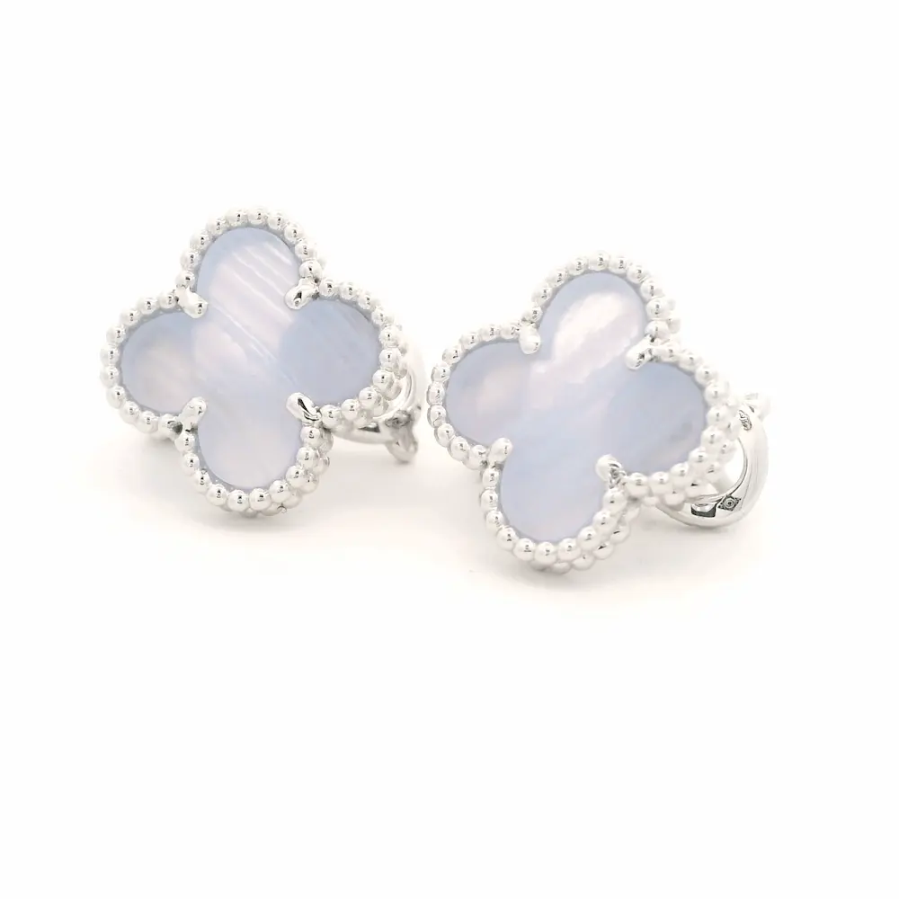 Vintage Alhambra earrings, rhodium plated 18K white gold, Chalcedony