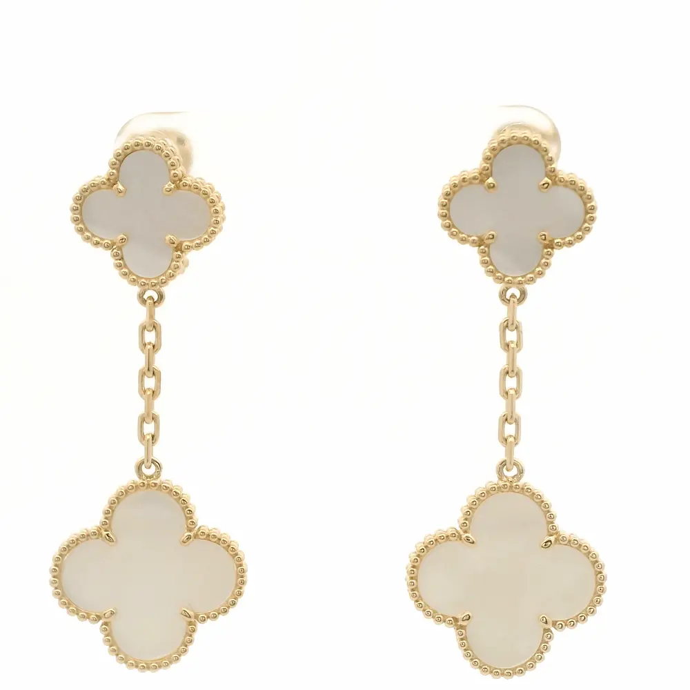 18K Yellow Gold Van Cleef Mother of Pearl Magic Alhambra 2 Motif Earrings